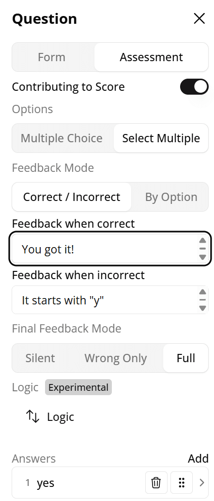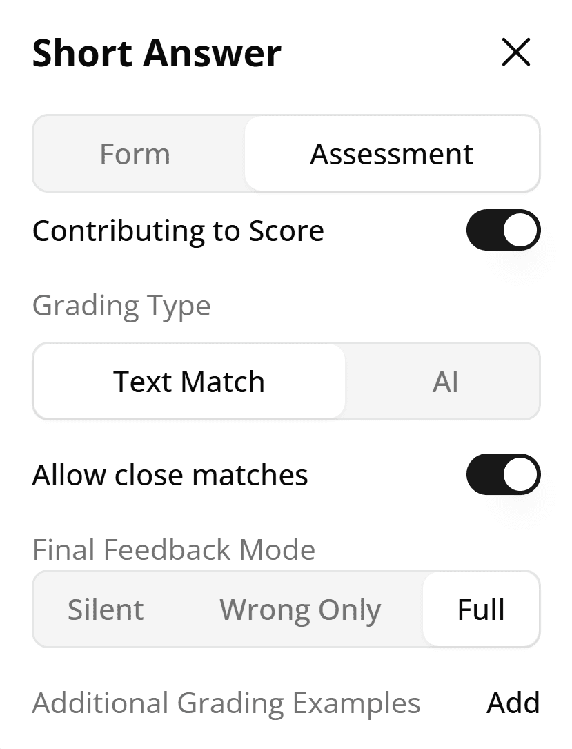We've added more flexibility to assessment questions with new settings and updates: